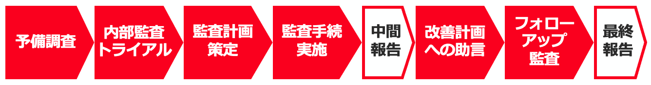 - 内部監査トライアル:対象事業年度開始前に改善点を洗い出し、本番での指摘事項の多発を未然に防止
